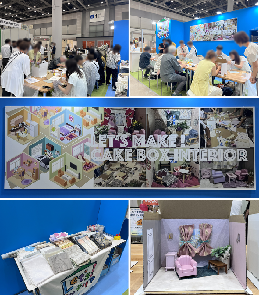 当協会では、ケーキ箱を使ったインテリアコーディネートのワークショップと、「令和7年度 住まいのインテリアコーディネーションコンテスト 高校生部門」の入賞作品展示、ご自身の「好みのインテリアスタイル」が診断できるインテリアチャートを展示しました。
