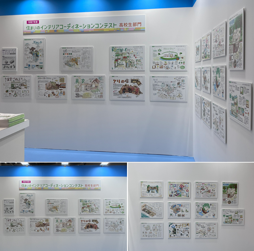 会場では、2025年6月2日(月)~7月25日(金)の応募期間に集まった総数250点(39校)の中から、インテリア産業協会会長賞1点、高校生部門賞1点、優秀賞2点、奨励賞5点、注目作品賞11点の計20点の入賞作品を展示しました。
