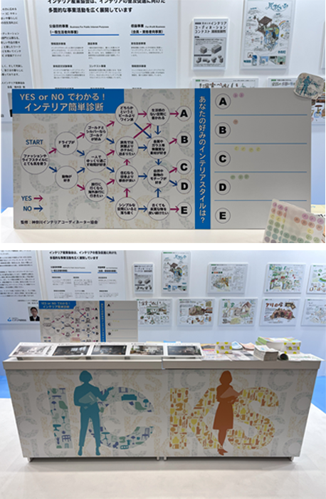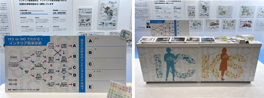 神奈川インテリアコーディネーター協会監修のもと、最大7つの質問に答えるだけで好みのインテリアスタイルが診断できるインテリアチャートを作成・展示しました。短時間で結果がわかるコンテンツということもあり、多くの参加者に体験いただきました。