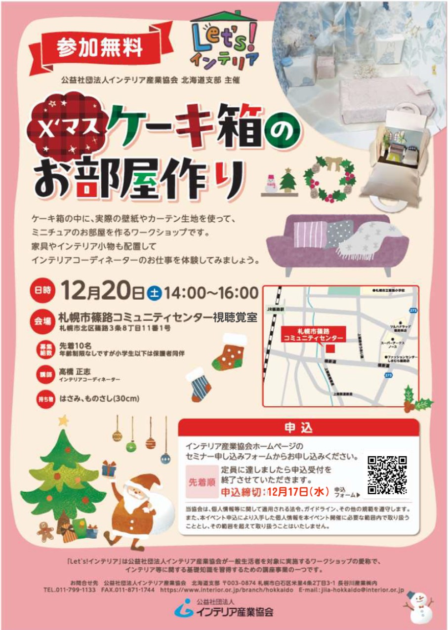 【北海道開催】(公社)インテリア産業協会北海道支部主催ワークショップ 「Let’s! インテリア『ケーキ箱のお部屋作り』」(2025年12月20日(土)開催)